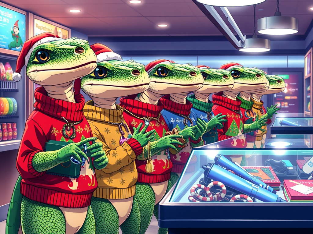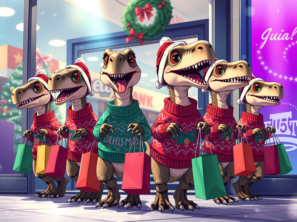 The raptors dressed in Christmas sweaters and leggings arrive in twos and threes. Not hunting in the way stories tell but moving with the same subtle awareness – heads turning, eyes scanning, steps light and thoughtful. They are here to complete holiday shopping lists and find connection, comfort, something small and bright to carry into a hard and uncertain world.